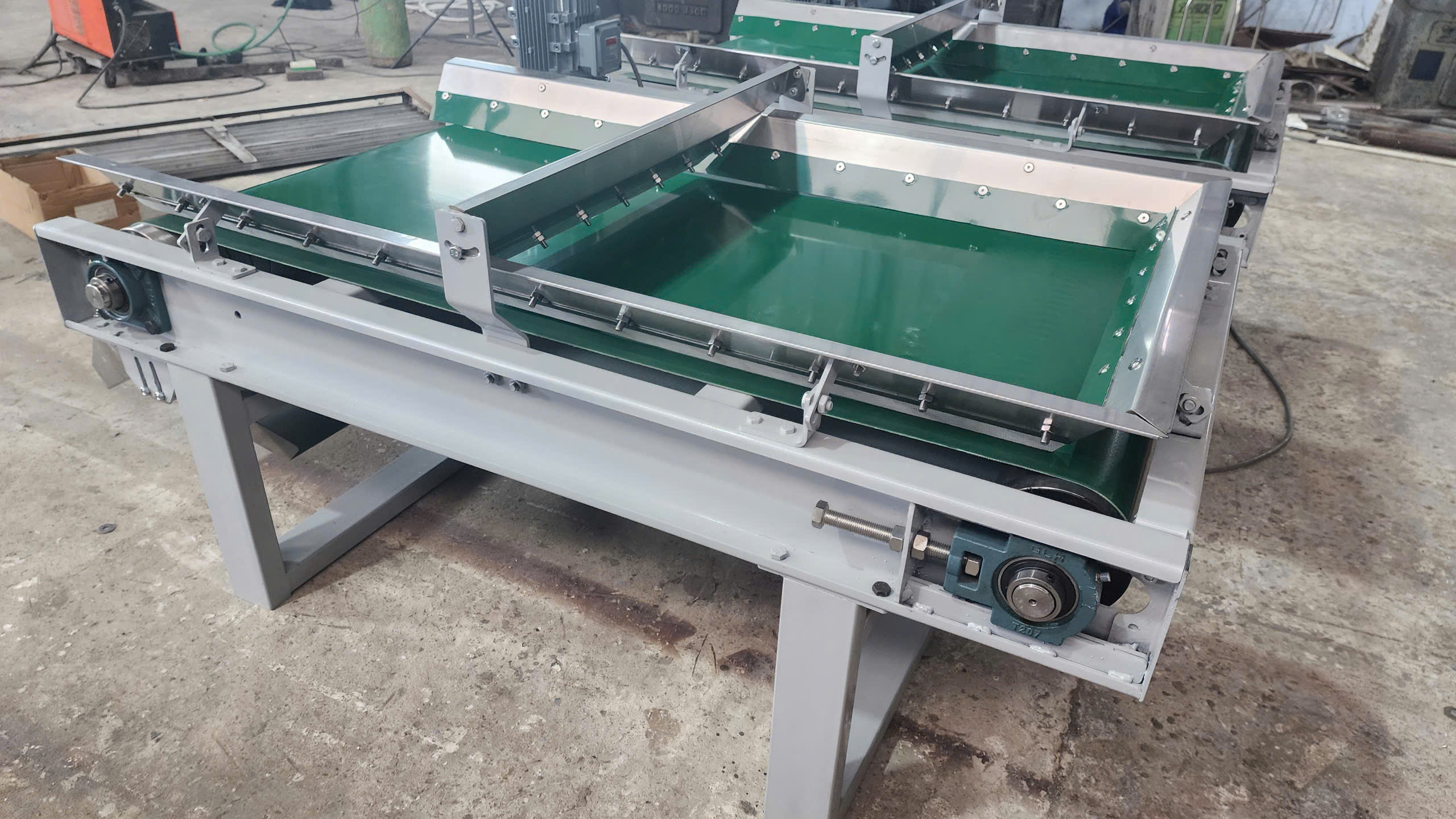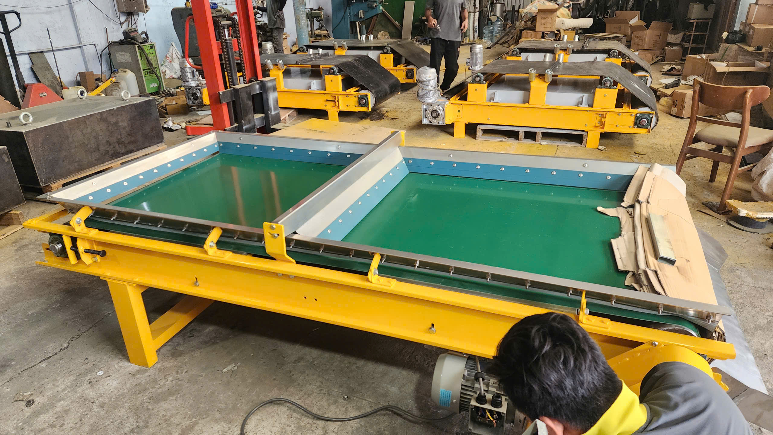 - Gia công khung & băng tải: Chế tạo khung bền chắc, dây băng phù hợp, lắp đặt motor truyền động.