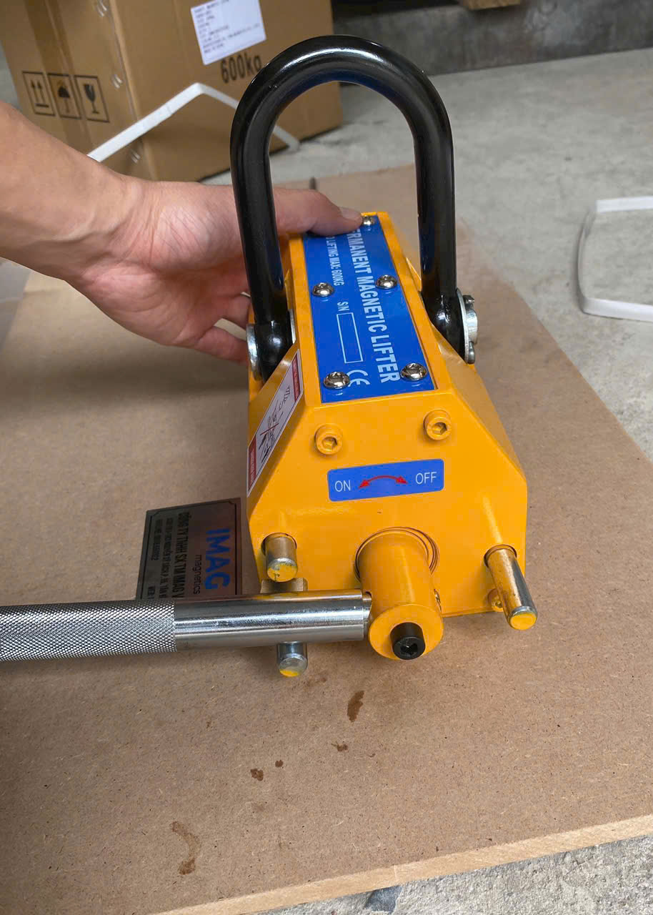 Nam châm nâng tay gạt, hay còn gọi là cẩu từ, nam châm tay gạt ra đời như một giải pháp tối ưu. Đây là thiết bị nâng hạ sử dụng nam châm vĩnh cửu, vận hành bằng cơ chế cơ học đơn giản qua một cần gạt. Khi cần gạt được bật về chế độ ON, lực từ sẽ hút chặt tấm thép, giúp nâng hạ dễ dàng. Khi gạt về OFF, vật liệu sẽ được nhả ra.